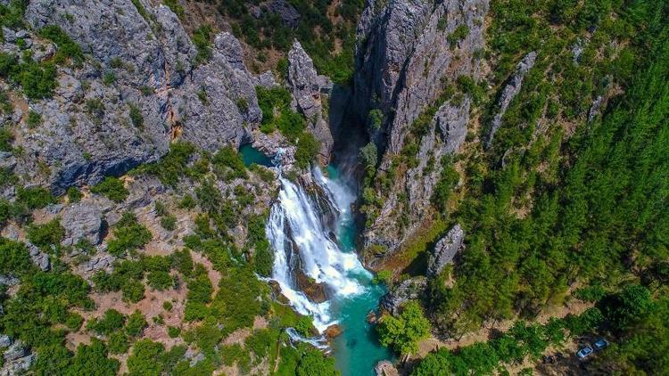 Antalya'nın gündoğmuş i̇lçesi'nde, torosların zirvesinde doğan ve yaklaşık 50 metre yüksekliğindeki uçansu şelalesi, 'ormanın içindeki saklı cennet' olarak tanınmaya başlandı.